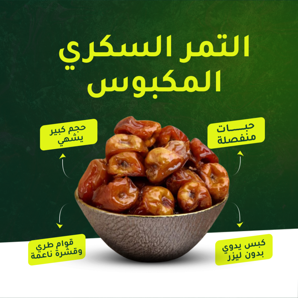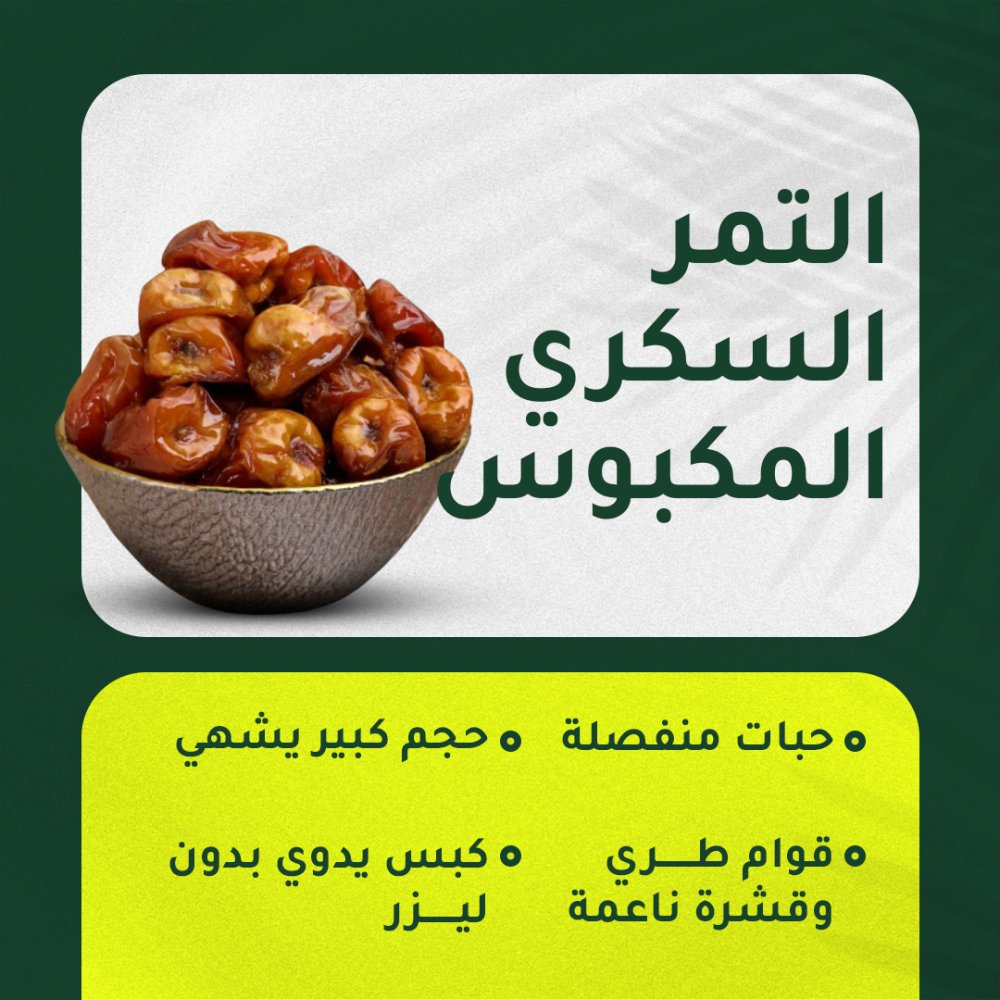 🟫طعم غني: تمر سكري مكبوس فاخر طعمه يخطف حواسك لأنه من خير مزارعنا ويجيك طازج وميرّد وين ماكنت.